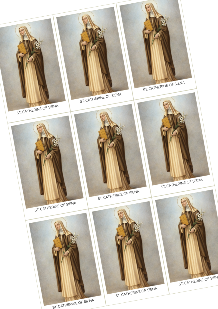 Buy now the prayer cards of Saint Catherine of Siena in PDF format, to carry with you, or give as a gift, strengthen your faith and share her example of courage and divine love.